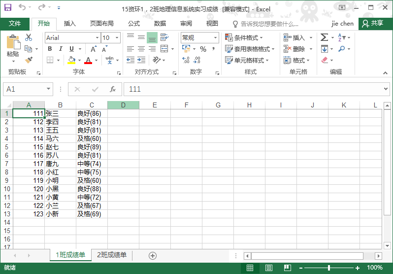 wb.save('15资环1,2班地理信息系统实习成绩.xls') #将新建的表格保存为'15资环1,2班地理信息系统实习成绩.xls'文件