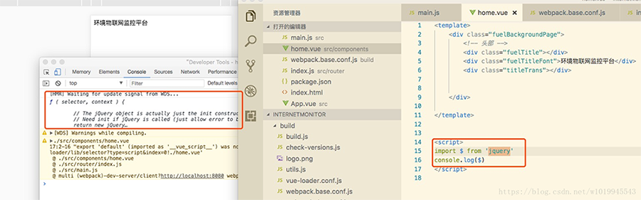 这个图中有黄色的警告,如果把console.log($)改成这样: