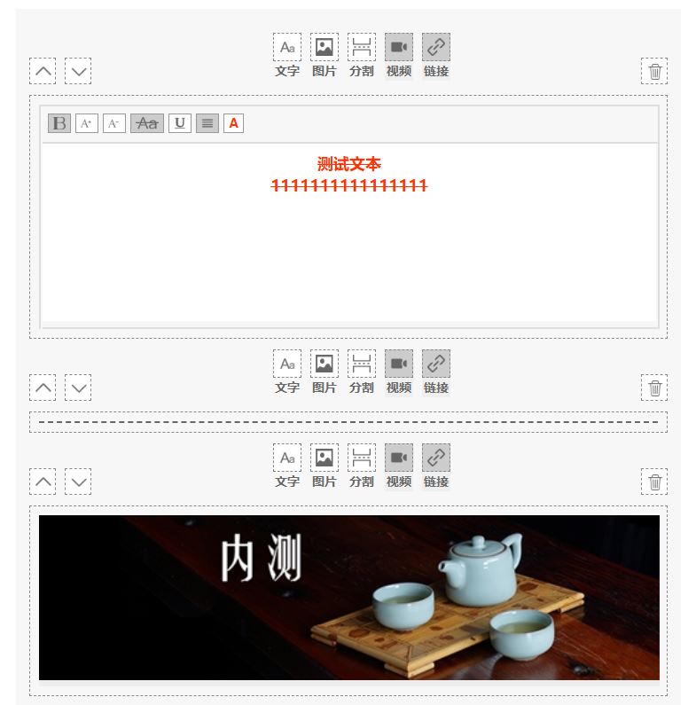 由于微信小程序不能使用常规的图文编辑器(比如百度的UEditor )编辑新闻内容之类的,所以用vue写了个针对小程序用的图文编辑器。效果如下