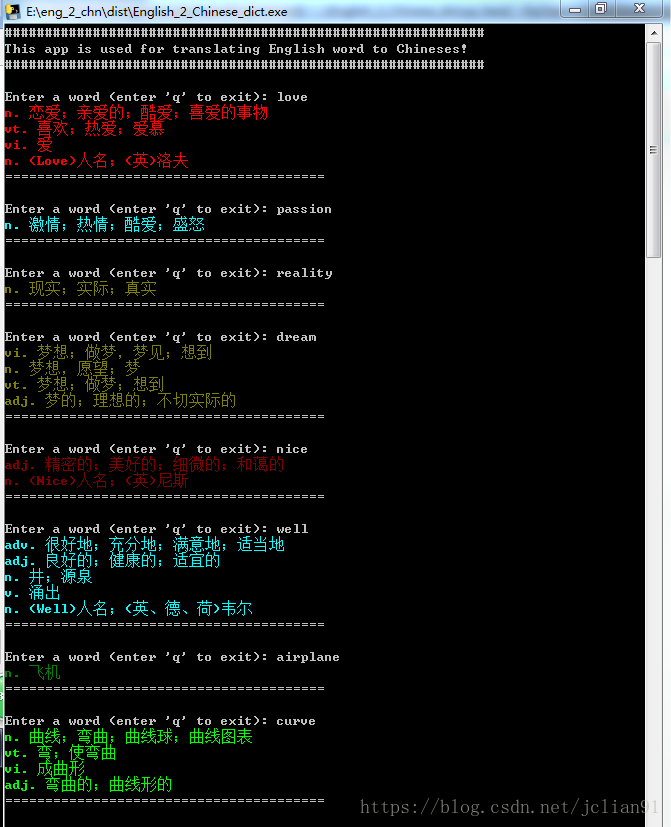 1.将Python代码打包成exe文件; 2.在CMD中输出单词的中文意思时,输出为彩色文字。