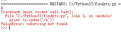 还有一个查找子字符串位置的函数index,只不过在没有找到的情况下,不是返回-1而是抛出异常,修改代码如下: