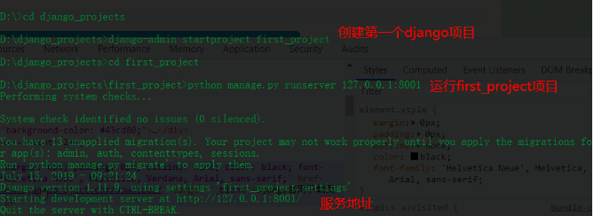 django-admin startproject first_project #创建了一个名为"first_project"的Django 项目:
