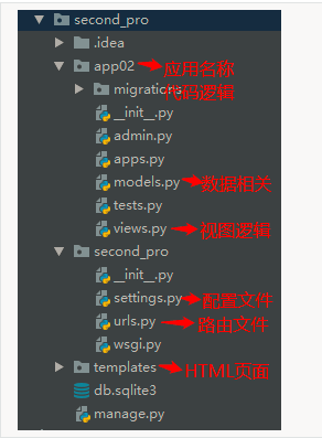 - wsgi.py ---- runserver命令就使用wsgiref模块做简单的web server,后面会看到renserver命令,所有与socket相关的内容都在这个文件里面了,目前不需要关注它。