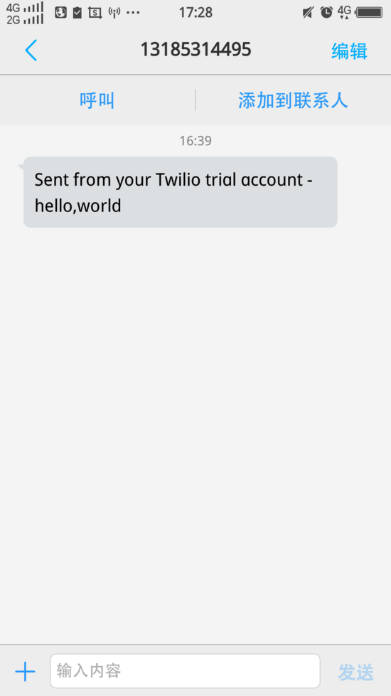 to="+接收者的手机号,且必须是通过验证的手机号",#注意必须有+,并且中国手机号需要在前面加上86