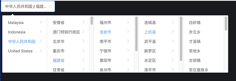 <el-cascader :options="regionHiera" v-model="selectedRegion" change-on-select/>