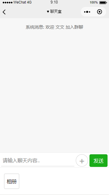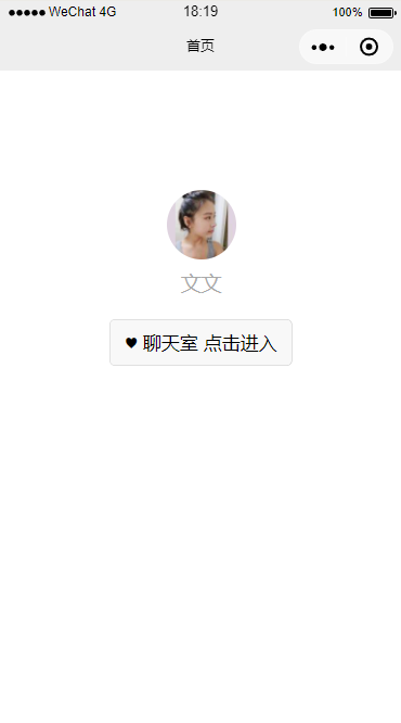 首先看一下界面,界面很简单,就是首页刚进来获取了用户信息头像,昵称等。点击进入聊天室就可以聊天了,下面我介绍的是前端代码实现,后台需要做的很简单,就是你给他发送什么数据,他就给你返回什么数据,就是在接收前台发送过来的图片的时候需要做个格式转换,因为有时候前端将接收到的json字符串转换json对象的时候,遇到有特殊的标点符号可能会报错,比如我就是‘\'报的错,找了半天。