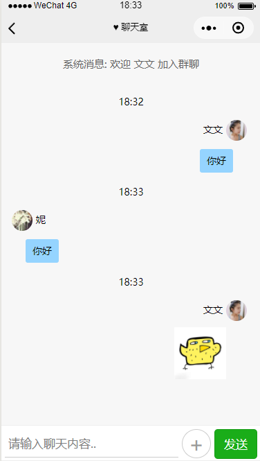 <view class="chat-notice" wx:if="{{userInfo}}">系统消息: 欢迎 {{ userInfo.nickName }} 加入群聊</view>