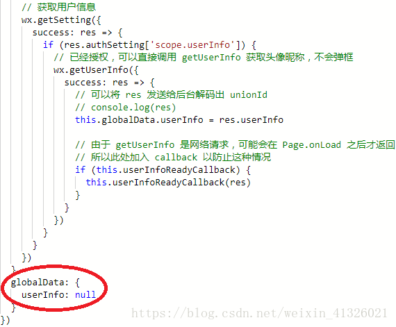 聊天室的逻辑操作页面,websocket.connect(){}调用的是websocket.js封装好的websoket的逻辑函数,回调就是后台的数据,之所以在本页面调用就是方便接收以后的逻辑操作。我建立文件的时候用的就是微信官方的快速模板生成的,所以app.js里面没有变动,用户在chat.js获取userInfo的时候可以引用全局的app.globalData.userInfo