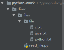 #获取当前pyhtho文件所在的目录:当前是:C:\gongoubo\python-work\direc\files dir_path = os.path.dirname(os.path.abspath(__file__)) print(dir_path) #存储txt文件的绝对路径为列表,同时为每个文件建立索引 def file_store(): files_name =[] files_dict = {} #获取file文件夹下所有为txt的文件 for i,name in enumerate(glob.glob("file/*.txt")): files_dict[i] = name.split('\\')[-1] file_name = dir_path + "\\" + name files_name.append(file_name) return files_name,files_dict