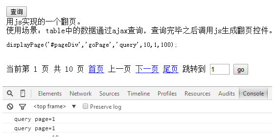 displayPage('#pageDiv','goPage','query',10,1,100);