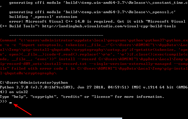 3、然后看到下面的提示后,就说明退出来了的。如果你输入错了,例如中文的括号,那么就会看到下面的提示了的,错误。