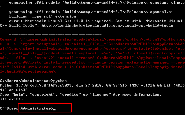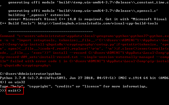 2、然后呢输入这个命令:【exit()】,并且按回车键。注意一定要是英文字符的,特别是括号。