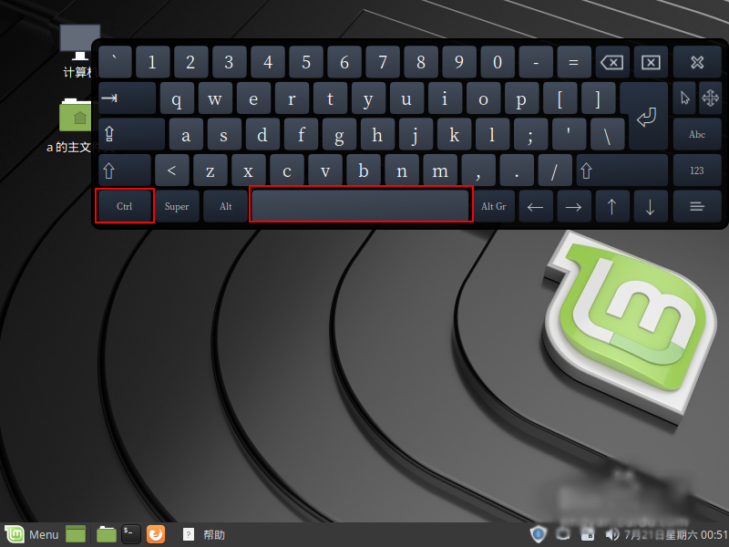 4、如要重新进入,那么先按Ctrl+space,把提示符下面的半字去掉。让它变成英文输入状态。