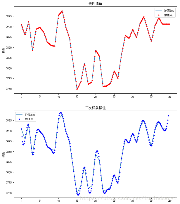 ax2.plot(x,iy3,'b.',label='插值点')