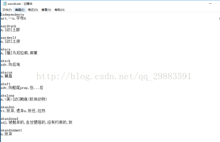 由于需要使用一个纯单词组成的文件,在网上下载到了一个存放单词的文件,但是里面有中文的解释,那就需要做一下提取了。