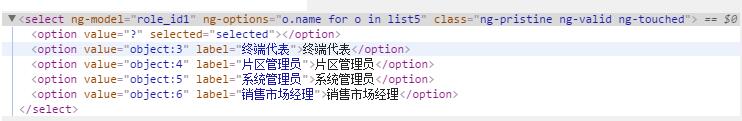 $scope.list5 = [{"id":2,"name":"终端代表"},{"id":3,"name":"片区管理员"},{"id":4,"name":"系统管理员"},{"id":5,"name":"销售市场经理"}]
