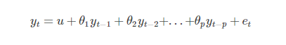 AR模型描述的是当前值与历史值之间的关系,滞后p阶的AR模型可以表示为: