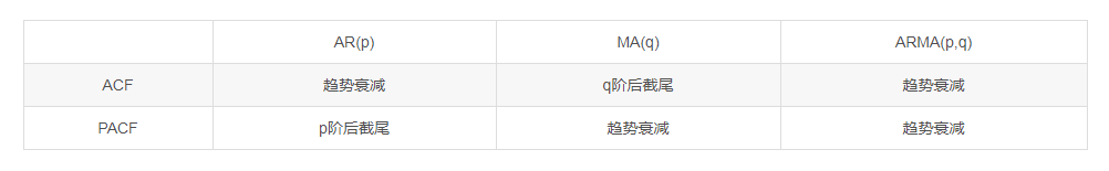 - 通过观察自相关系数ACF与偏自相关系数PACF确定q和p