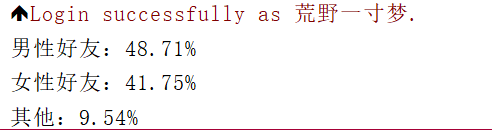 print (u"男性好友:%.2f%%" % (float(male) / total * 100))