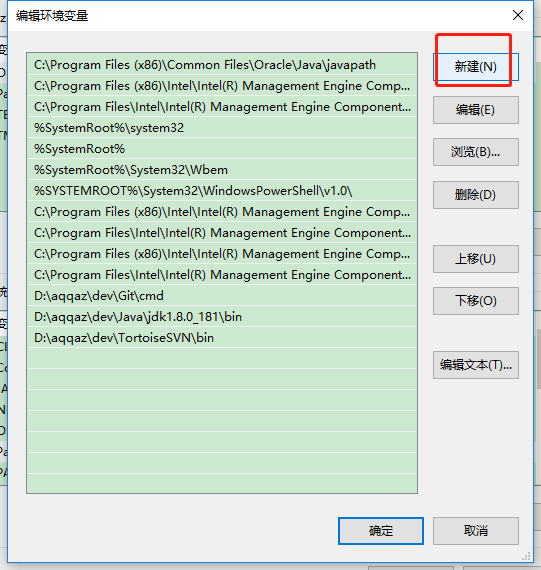 想要在cmd黑窗口中使用node命令,需要在path中加入node安装路径,点击编辑按钮,新增node安装路径。 以下是win10的界面,点击编辑文本按钮即可切换至和win7一样的界面。