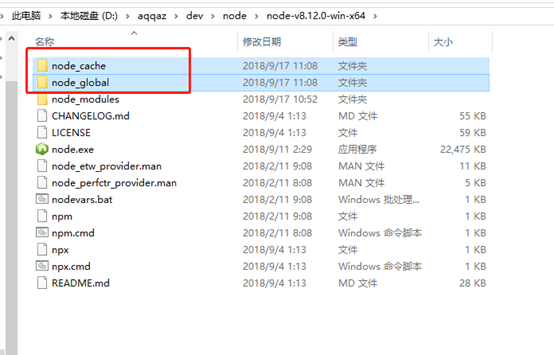 在安装node的目录下,node-v8.12.0-win-x64下新建文件夹node_cache和node_global