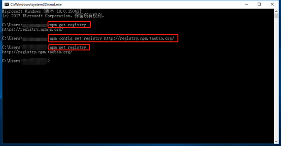 更换成阿里的镜像,在黑窗口输入npm config set registry http://registry.npm.taobao.org/