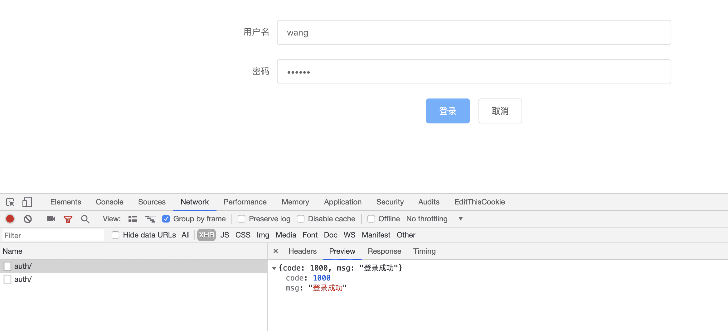 后端代码就不介绍了,可以参考 django rest framework 实现用户登录认证