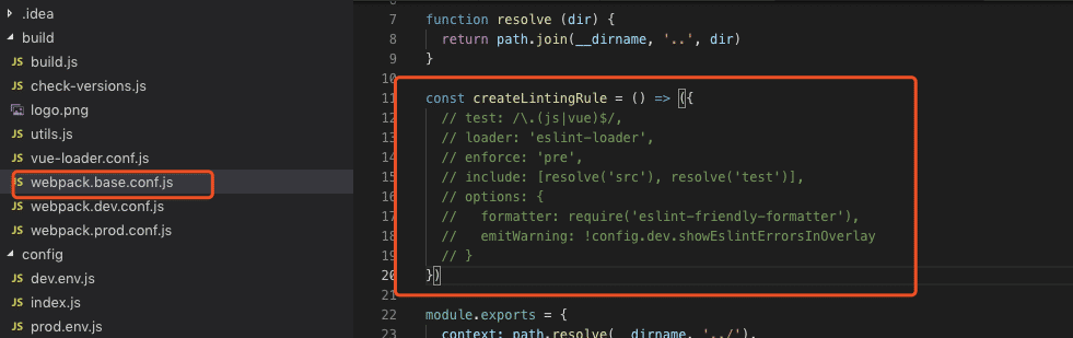 在自己的项目目录下build.js——webpack.base.conf.js文件里面有段代码注释掉就行