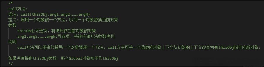 call方法可以用来代替另一个对象调用一个方法。call方法可将一个函数的对象上下文从初始的上下文改变为有thisObj指定的新对象。