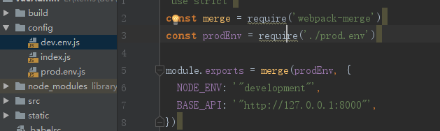 在工程目录下 > config > dev.env.js 修改为如下