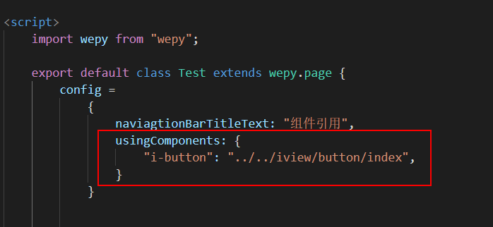 5.在页面的 config 配置项里引用 src 里面的组件,用法:如图