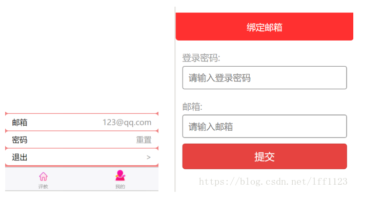 我想实现的效果是点击下图左侧邮箱,然后进入右侧页面,进行邮箱的修改,点击提交后跳转到左侧页面,同时邮箱也发生改变。