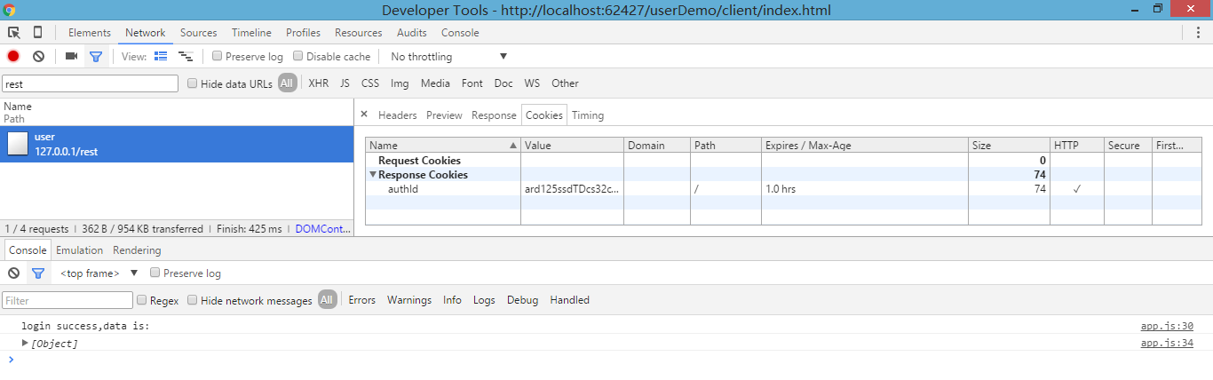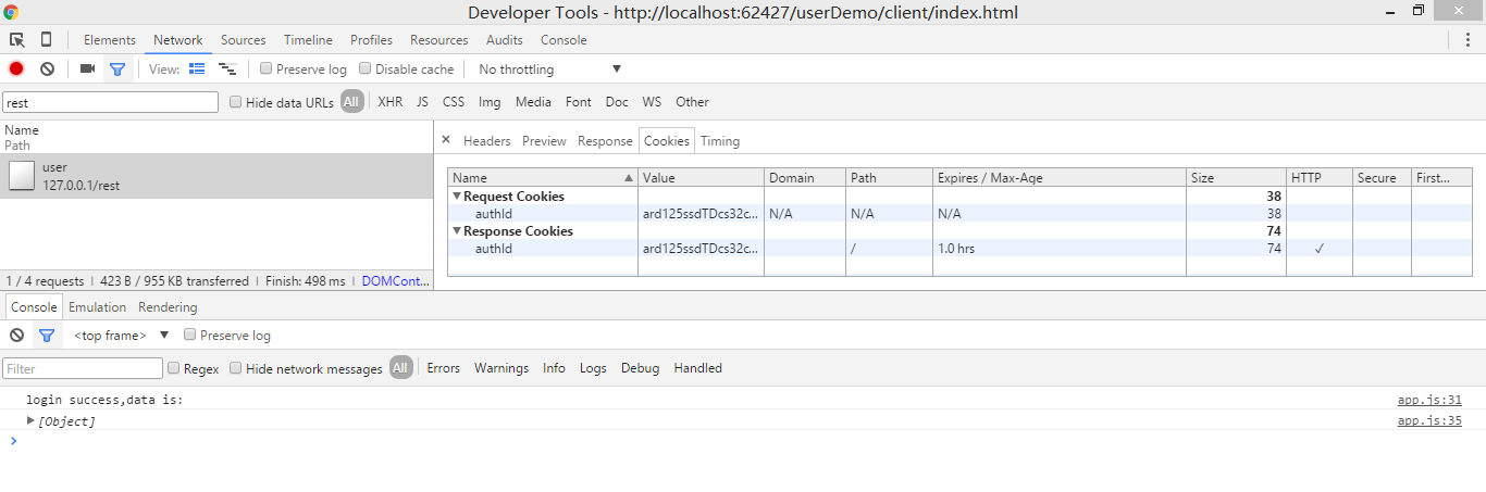 - 服务端校验用户是否合法,如果合法将产生一个唯一的身份标识authId,以cookie的形式返回给客户端;
