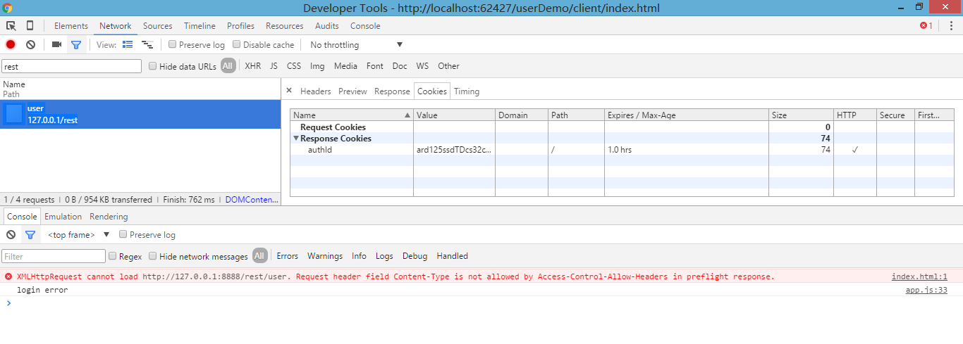 cannot load http://127.0.0.1:8888/rest/user. Request header field Content-Type is not allowed by Access-Control-Allow-Headers in preflight response.