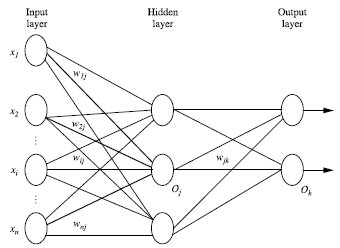 初始化权重和偏向:随机初始化在-1到1之间(或者其他),每个单元有一个偏向;对于每一个训练实例X,执行以下步骤: