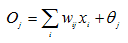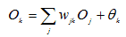 Ij为当前层单元值,Oi为上一层的单元值,wij为两层之间,连接两个单元值的权重值,sitaj为每一层的偏向值。我们要对每一层的输出进行非线性的转换,示意图如下: