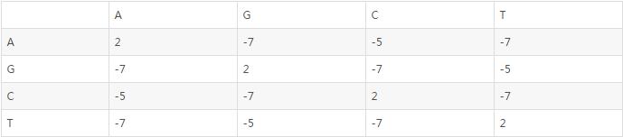 这次更新了打分函数如下,空位罚分改为-5,但不区分gap open 和 gap extend。