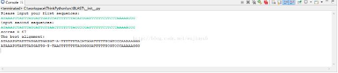 无疑python对字符串的处理更加强大,语言也更加简单,优雅。比如最后逆序输出alignment,java我是单独写了一个逆序函数,而python只用一个语句就可以完成相同任务。