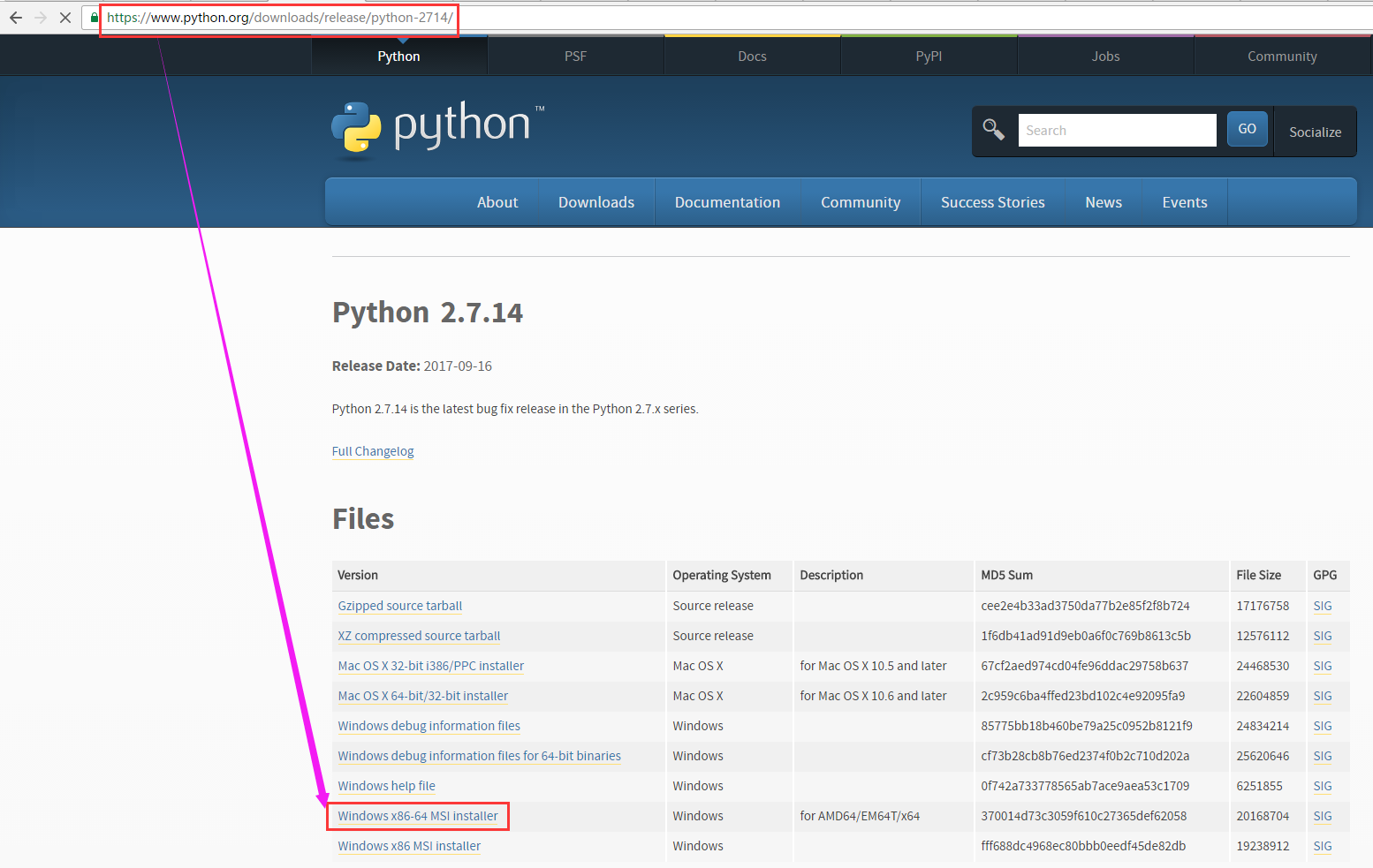 3.下载python-2.7.14.amd64.msi文件到本地E盘Python目录下,如果E盘没有Python目录可以建一个。