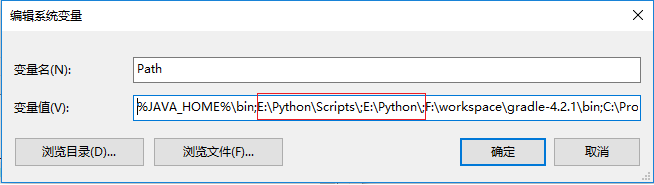 (6)我们在%JAVA_HOME%\bin;这句后面添加上E:\Python\Scripts\;E:\Python\;