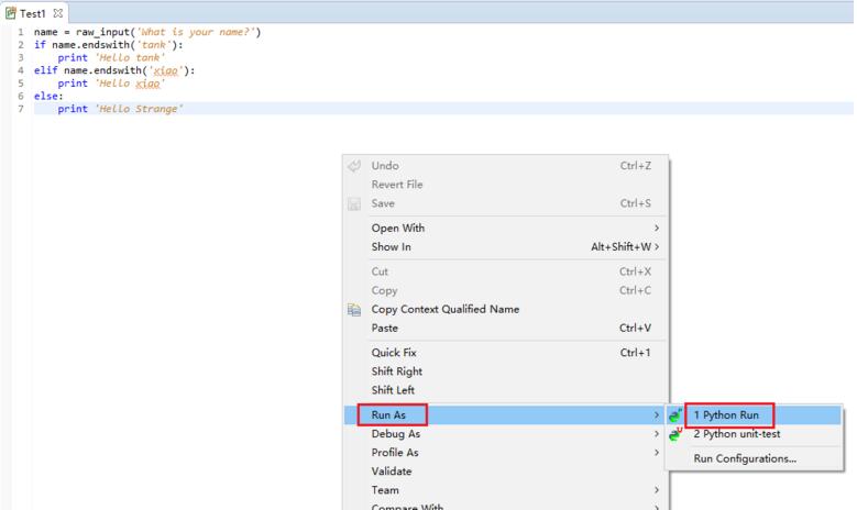 最后我们来运行一下脚本文件,我们在空白页面右键----->Run As------>Python Run