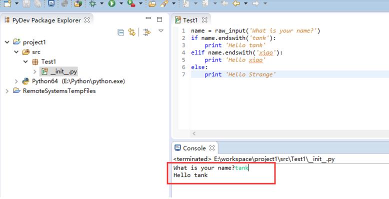 我们在"?"后输入"tank"然后按回车键,即可看到输出了"hello tank",脚本随之执行完毕。