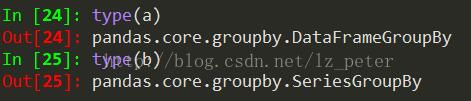 分组后我们可以看到a和b的数据类型是DataFrameGroupBy和SeriesGroupBy