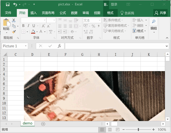 程序执行结束后,生成了名称为pict.xlsx的Excel文件。打开后可以看到图片插入成功,插入点是指定的单元格,而整个图片的左上角落于此指定单元格。大致的信息如下图:
