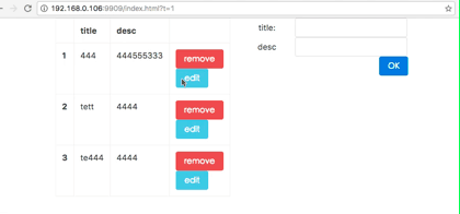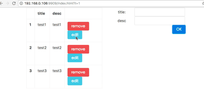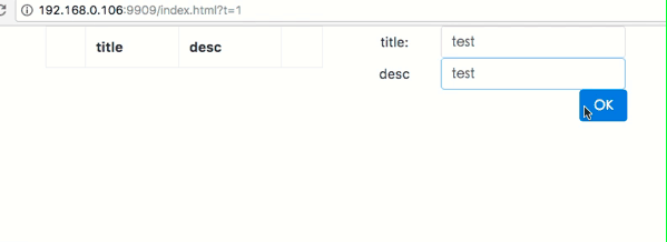 刷新运行,发生程序按照预期运行了,接下来,增加更新保存操作,修改OK按钮的事件绑定方式为save,并通过id判断新增还是修改操作: