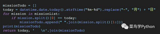 当然,有时候我们会在记事本里记录很多需要办理的事项,执行日期也会比较分散,但是没必要每天对所有的待办事项进行提醒。对此,我们可以筛选出当天需要办理的事项进行提醒,这样效果无疑会更好一些。任务筛选的基本思路是获取系统当天日期,将它与各事项的待办日期逐一进行匹配,代码如下: