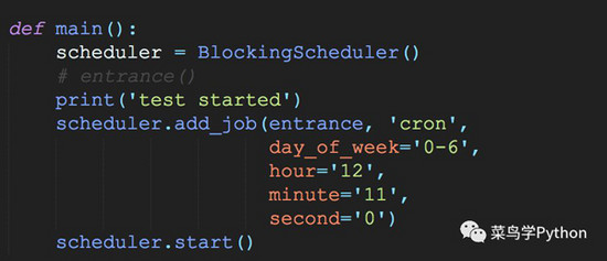 现在我们需要设置一个定时任务,这里使用APScheduler来实现。APScheduler是基于Quartz的一个python定时任务框架,提供了若干种类的调度器,由于我们的定时任务进在当前进程中执行,所以选择BlockingScheduler调度器,然后通过add_job来动态增加待执行的任务。