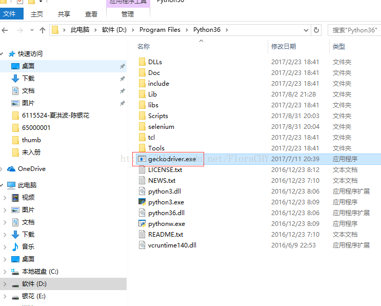 下载完成后,解压,将geckodriver.exe放置在与python3.exe相同的路径下: