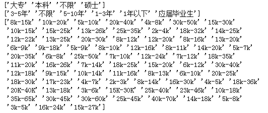 由此可以得出python数据分析的工资为10k-20k的比较多,40以上的也不少,工资高估计要求会比较高,所以我们看一下职位要求。