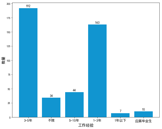 从柱状图可以看出,python数据分析师的工作经验绝大部分要求1-5年。